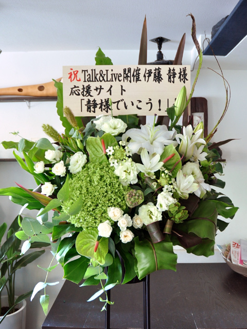 写真は、入口の様子と参加できない分せめてということでお花をお贈りしたのでそれを。うちのサイトが先日(23日)5周年を迎えたところでしたので、サイト名義で贈らせていただきまきました。